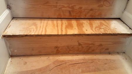 This is an up-close view of the last step where they used plywood instead of a stair tread.